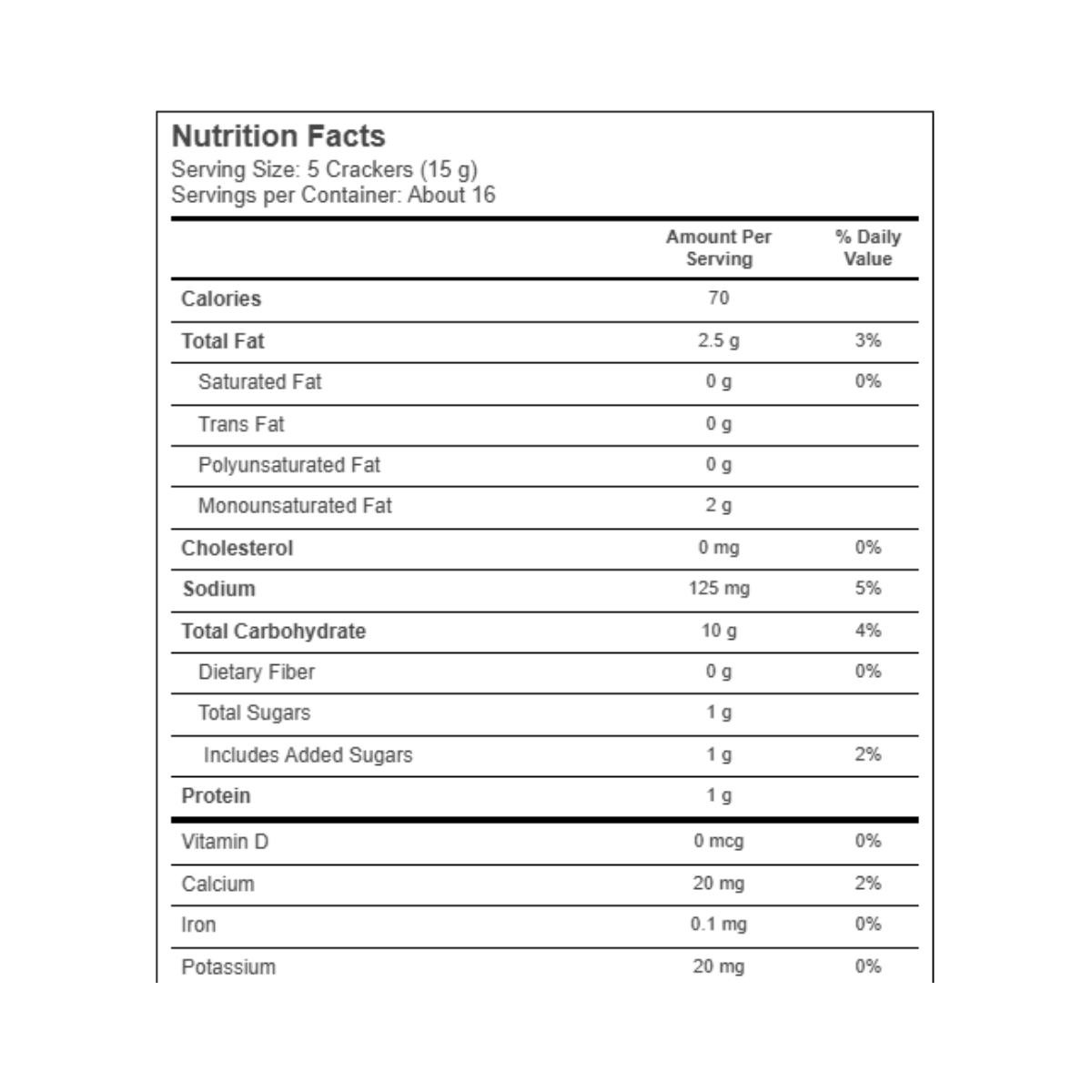 Disfruta estas crackers clásicas redondas hechas con ingredientes simples y sin sabores artificiales. Crujientes y ligeras, son perfectas para comer solas, con quesos, dips o acompañar ensaladas y sopas. Elaboradas sin colorantes ni sabores artificiales, aptas para vegetarianos y elaboradas con granos cuidadosamente seleccionados. Un snack versátil y delicioso que combina con cualquier momento del día.