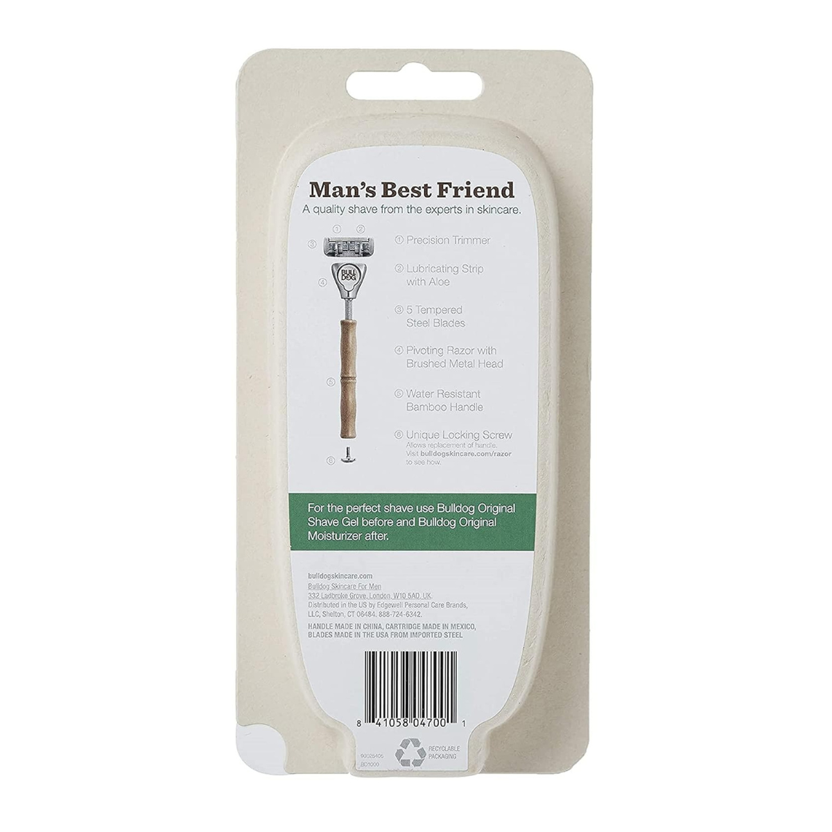 Cabezal de repuesto con 5 hojas de acero templado (5‑blade) compatible con la línea de rasuradoras Bulldog. Incluye cinta lubricante con aloe para un afeitado suave y un recortador de precisión para zonas difíciles.
