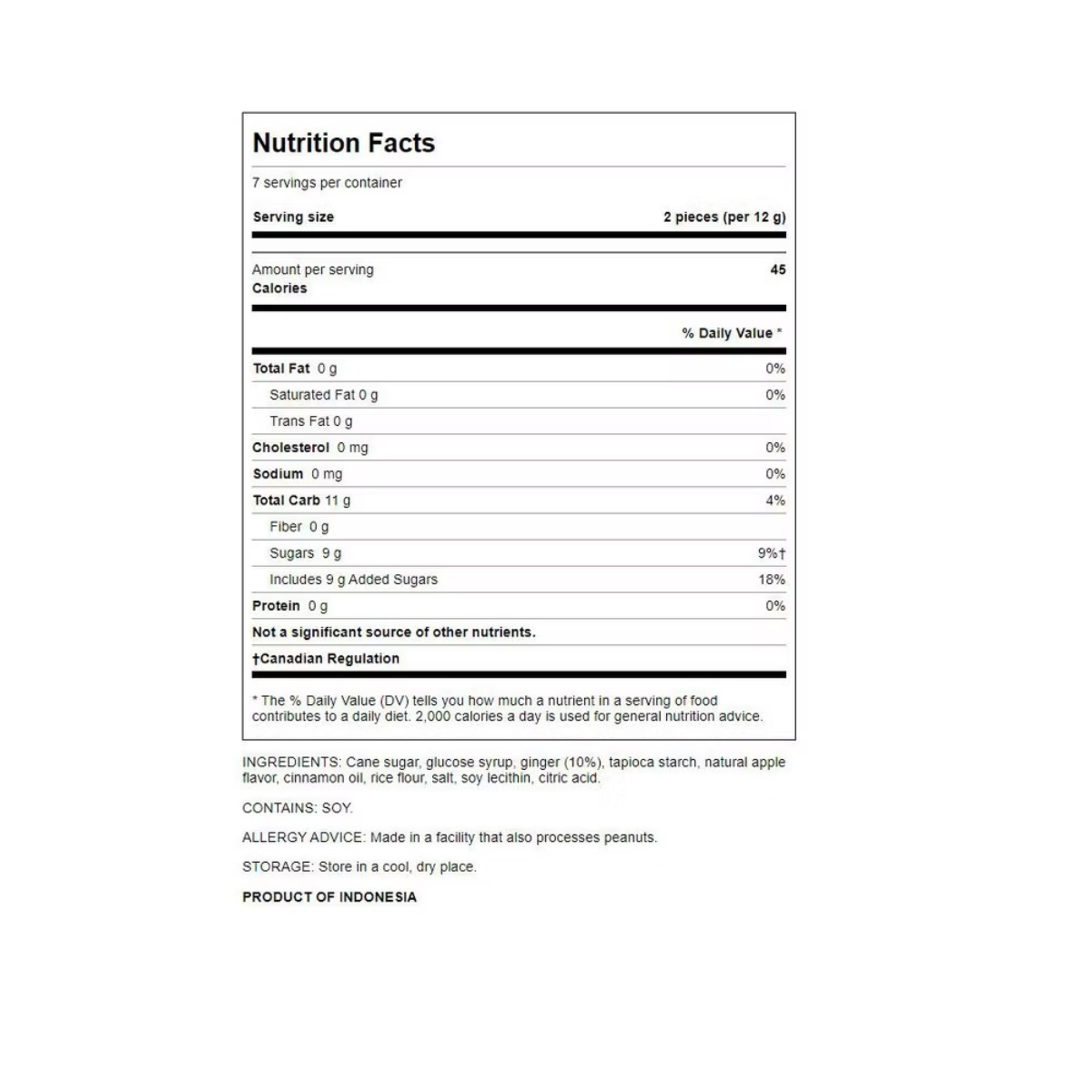 Golosinas conscientes de la salud: el número 1 de América en ventas de caramelos de jengibre. Super cargado con jengibre más fresco que cualquier otra marca, Gin Gins son ideales para problemas de estómago, náuseas y digestión. Caramelos frutales son estimulantes, útiles y absolutamente deliciosos. Esta presentación está deliciosamente condimentada con manzana picante.