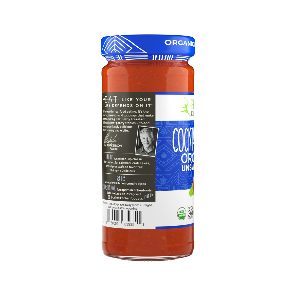 Salsa de cóctel PRIMAL KITCHEN® Orgánica. Para camarones la mejor. Sirva los favoritos de los mariscos como calamares, pasteles de cangrejo y más con esta suculenta salsa hecha con ingredientes orgánicos USDA y sin azúcar. Está condimentada a la perfección con rábano picante.