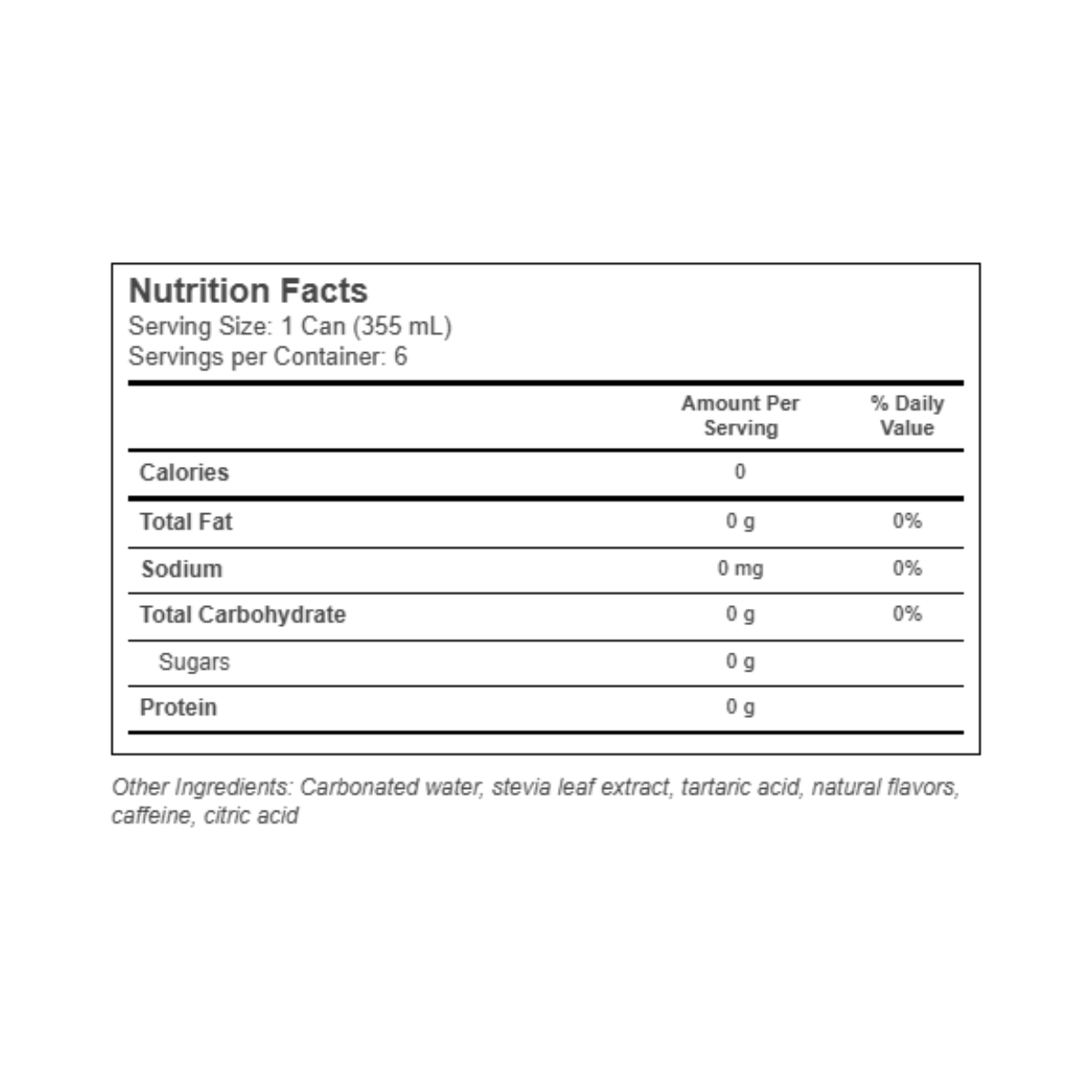 Cola sin azúcar ni calorías, endulzada naturalmente con stevia, que ofrece el sabor clásico de cola con agua carbonatada y sabores naturales. Certificada Non‑GMO Project, Gluten Free, vegana, kosher, libre de edulcorantes artificiales, colores sintéticos y sabores falsos. Ideal para quienes buscan disfrutar de una soda tradicional sin los compromisos de los ingredientes poco saludables.